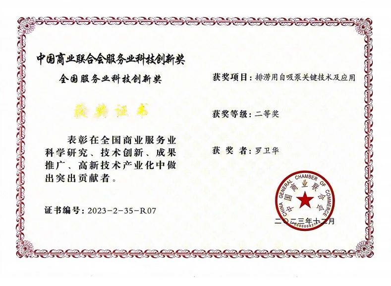 7月21日,中國商業(yè)聯(lián)合會主辦的2024年全國商業(yè)科技質(zhì)量大會在北京召開。本次大會主題是“聚焦新質(zhì)生產(chǎn)力 賦能行業(yè)高質(zhì)量發(fā)展”。貝德科技集團總經(jīng)理羅衛(wèi)華研發(fā)的“排澇用自吸泵關(guān)鍵技術(shù)及應(yīng)用”榮膺中國商業(yè)聯(lián)合會服務(wù)業(yè)科技創(chuàng)新獎二等獎。